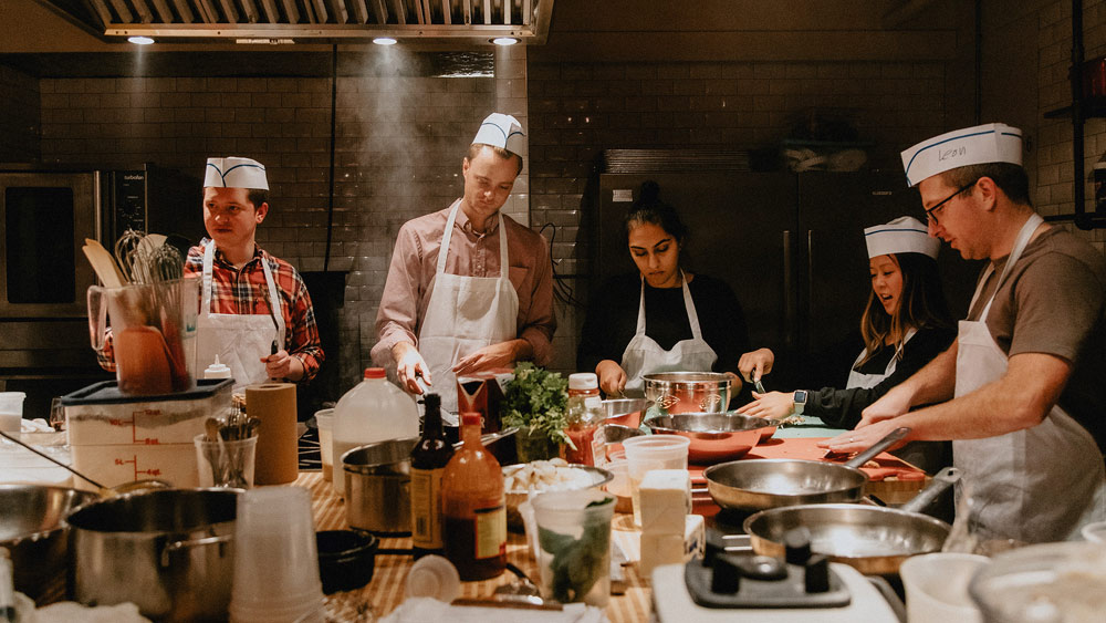 classes, preferring to let students take charge of the ladles, knives, and whisks. By the end of each lesson, students will have whipped up a four-course meal in the classic French style. As if adding ratatouille, boar sausage, and crème brûlée to your culinary repertoire wasn’t enticing enough, Chef Vincent lets his students uncork BYOB bottles of wine during the post-class feast. What does another night of Easy Mac have on that?