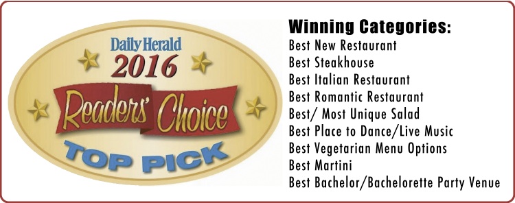 Locally sourced and organic ingredients make up Primo Italian American Cuisine’s menu. Creating a marriage of a classic American steakhouse and a signature Italian restaurant, the atmosphere is rivaled only by the menu, both of which come highly recommended by The Daily Herald, with Primo winning 2016 Reader's Choice awards for "Best Steakhouse," "Best Italian Restaurant," "Best Place to Dance/Live Music," "Best Romantic Restaurant," and "Best Martini," among others. The menu is composed of both Prime and Grass Fed steaks, chops, and classic Italian dishes, but what truly brings the dishes to life is Primo’s co-owner, celebrity chef Richard Mancini. Prior to opening the restaurant, the chef won the first season of Food Network's "Chef Wanted," and has worked with high-profile names including The Rolling Stones. At Primo, he offers a menu of classic and modern Italian fare from various regions with an emphasis on sustainability. Rib-eye steaks, for example, are sourced from Good Earth Farms and finished in cinnamon butter, whereas traditional pasta dishes, such as towering lasagna and roasted-chicken alfredo, are made with organic pasta. To complement the Italian-American cuisine, Primo offers an extensive wine list featuring roughly 100 bottles.