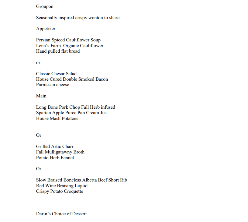 - C$70 for a four-course chef-designed dinner for two (C$124 value)