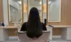 Experience a smooth hair transformation with celebrity stylist expertise at a luxurious salon setting. Includes a trim with service