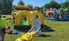Offers a 4-hour rental of two commercial-grade inflatables, allowing customers to choose any two from the exciting options: a Bounce House Combo with Slide, a 40-Foot Obstacle Course, or a Ninja Warrior Obstacle Course. Professional delivery and setup are included.