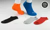 No show Puma's socks fit comfortably over men's feet, boasting varied designs in white/orange, black/yellow, dark blue, or grey/orange
