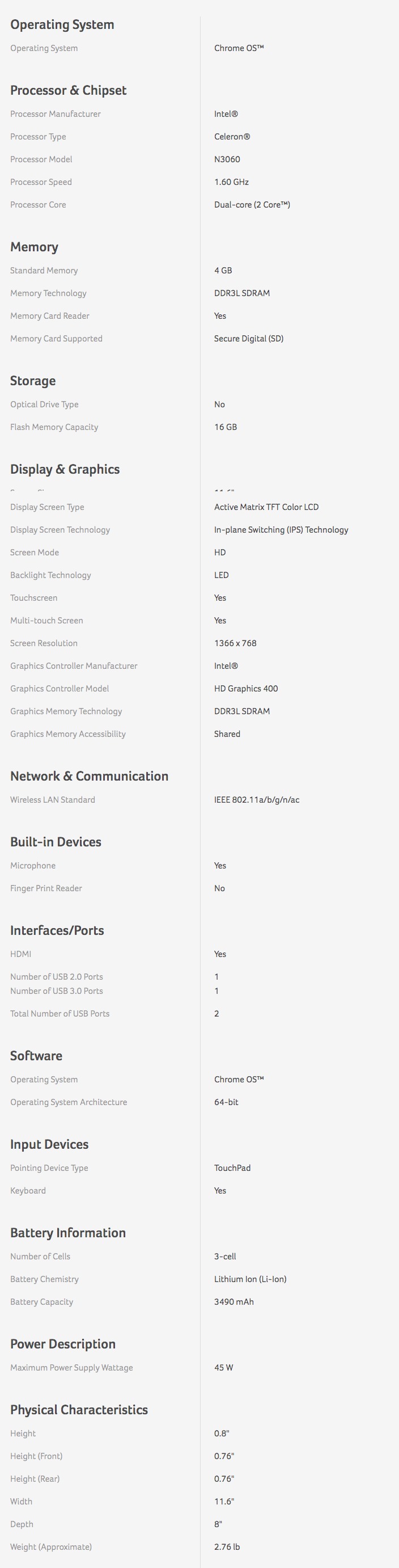 - Processor: Intel Celeron N3060 dual-core 1.6GHz with Intel Burst Technology (up to 2.48GHz)