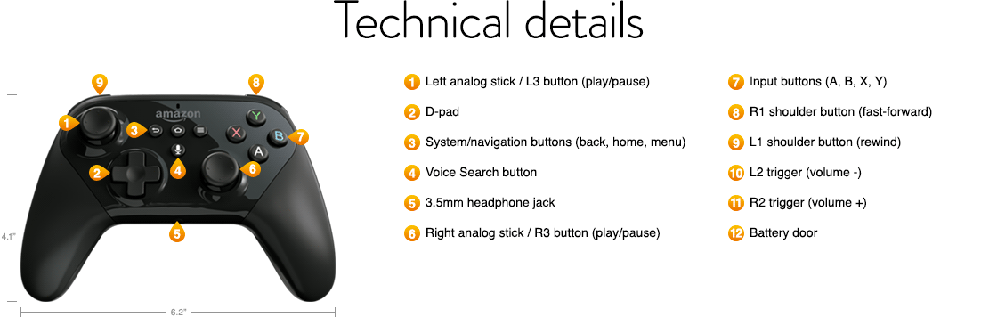 Wireless game controller featuring an ergonomic design and responsive controls allows you to play hundreds of games on the Amazon Fire TV