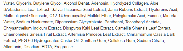 - Ingredients list