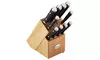 - Tan beechwood knife block (4.6”x8.8”)