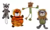 - Three toys resemble cute moose, elephants, hippos, tigers, or monkeys