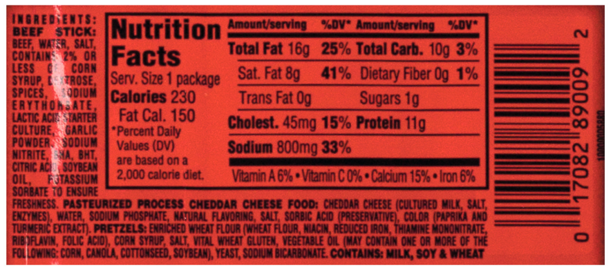 - Individual snack includes: 2 beef sticks, 2 pretzel sticks, 2 cheese sticks