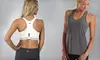 Women's tanks, capris, and bras made of flexible fabrics enhanced with moisture-absorbing materials