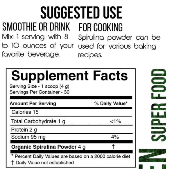 Rich in vitamins, organic spirulina is nutrient-dense, supports immune system, and promotes body detoxification