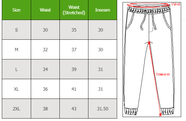 - Dropped inseam and elasticized waistband for added comfort