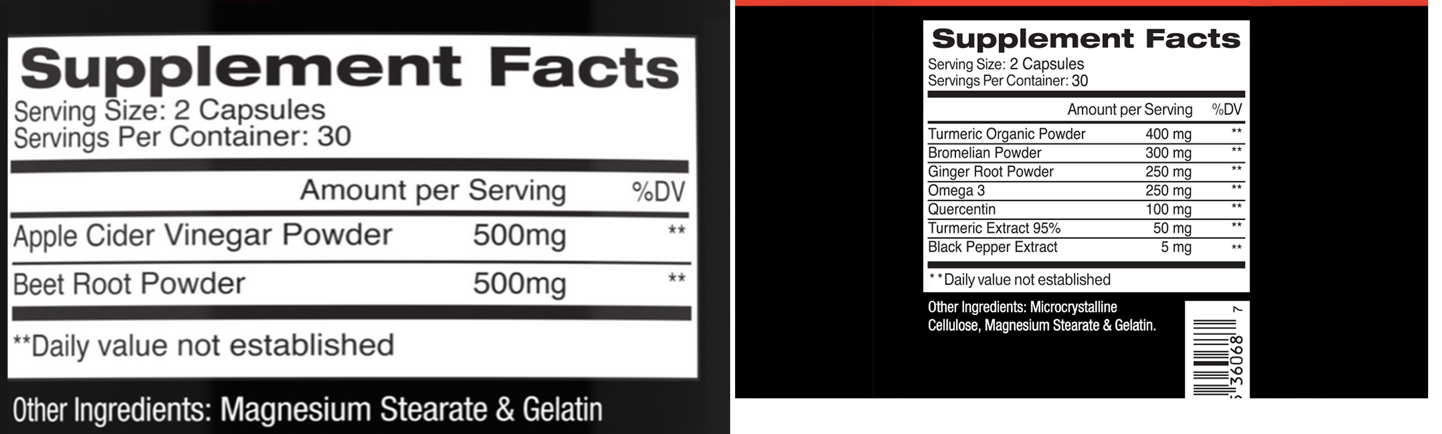 - Serving size: 2 capsules each