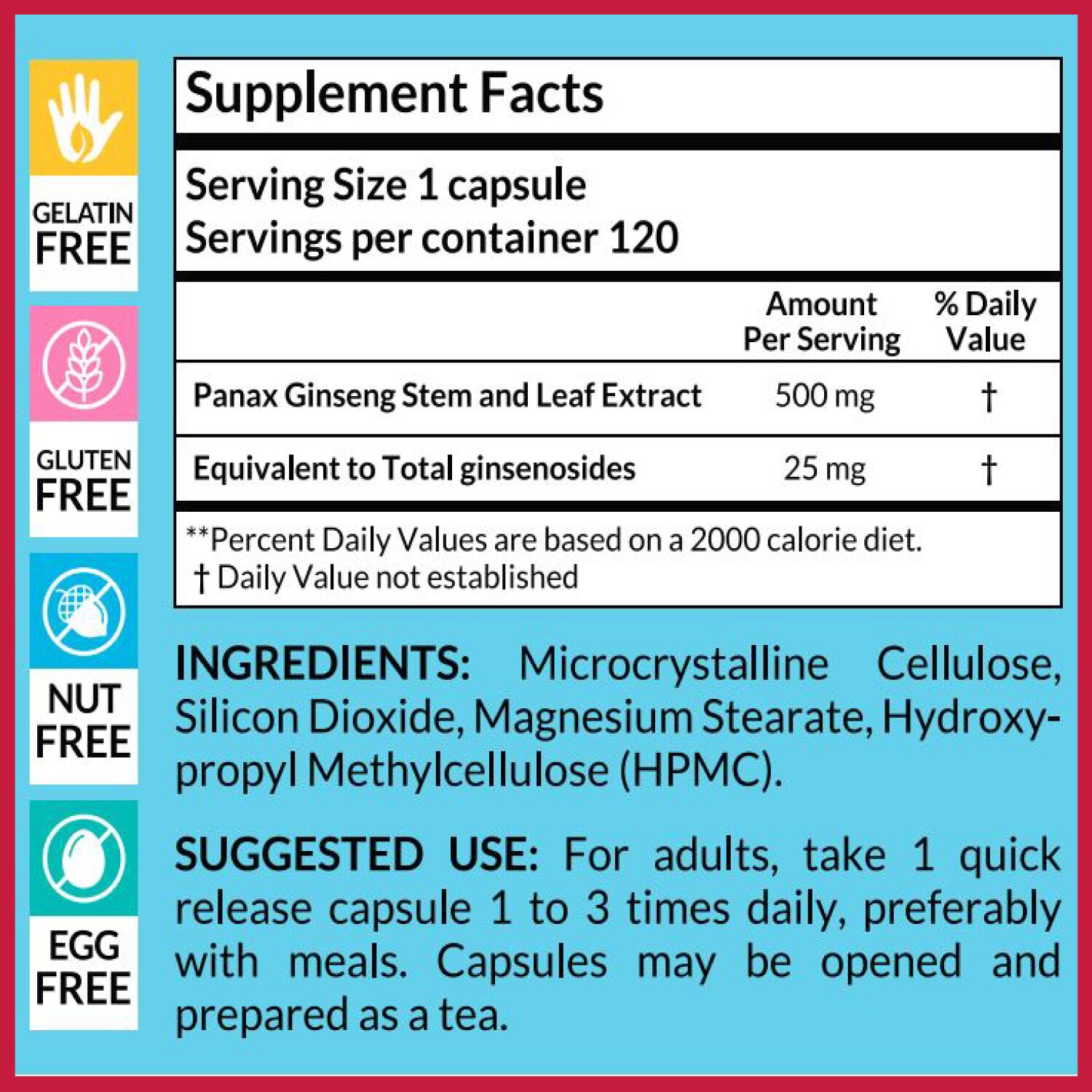ArtNaturals Korean Red Panax Ginseng Extract Capsules Dietary Supplements (500mg; 120-Count)