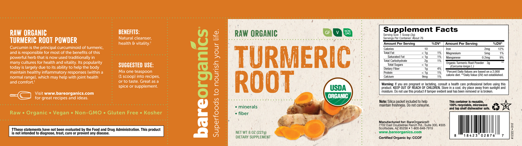BareOrganics Raw Organic Turmeric Root Powder (8 Oz.)