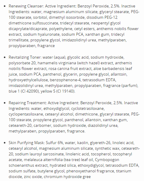 - 4-piece kit: Renewing Cleanser: 2 or 4 oz.; Revitalizing Toner: 2 or 4 oz.; Repairing Treatment: 1 or 2 oz.; Purifying Mask: 1 oz.