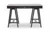 Great place to jot down notes or work on a laptop, this compact writing desk keeps it simple with a wide desktop and single drawer