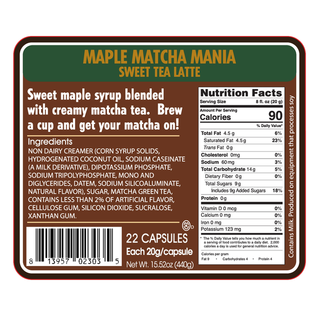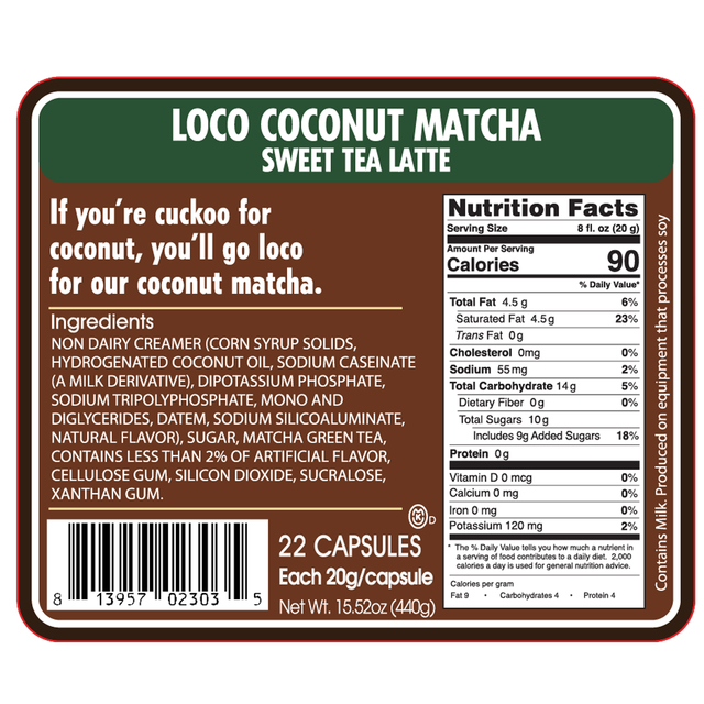 Dairy-based, sweetened latte beverage does not contain coffee but is formulated with matcha tea for a bolder, full-bodied flavor experience