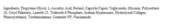 - Formulated with retinol, collagen, vitamin C, hyaluronic acid, and Niacinamide