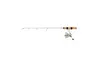 The Frabill Ice Hunter Series Rod features a solid graphite blank for superior sensitivity, stainless steel ice guides to prevent freeze up, tapered cork handles, and a convenient hook keeper. It is perfectly balanced for the utmost feel and control and has a super fast tip for putting the hurt to nibblers.