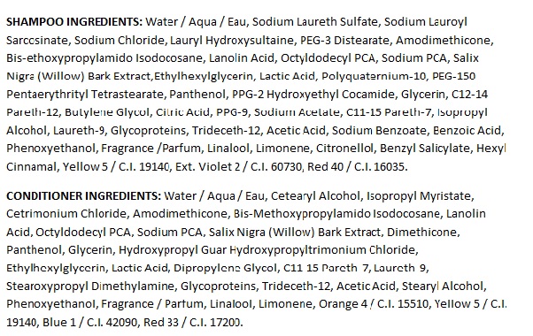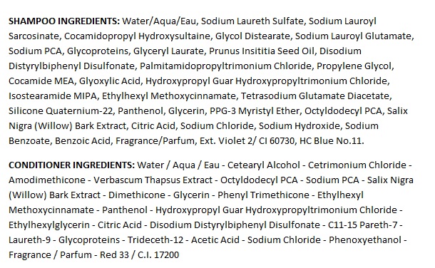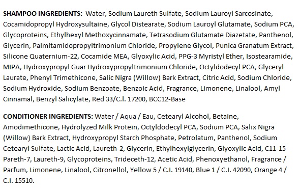 - Ingredients List