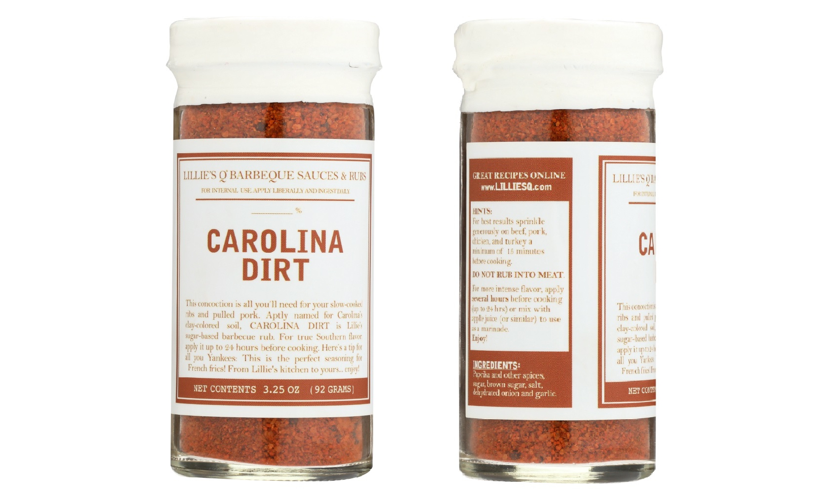 - Lillie’s Q barbeque sauces and rubs Carolina dirt (3.25oz.)