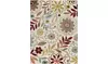 Add flair to a room with this blossoming transitional area rug. A captivating pattern of botanicals in delightful colors to enhance a number of design styles. Snowy ivory background with cranberry red, seafoam green, pear green, ecru gold, mushroom taupe, espresso brown, and russet. Options include rounds and a three piece set for a coordinated look throughout the home. Machine made of soft polypropylene that is naturally stain-resistant and easy to maintain. Vacuum often on high-pile setting and spot clean when necessary using mild detergent but no bleach.