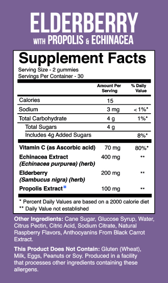 - Contains elderberry, echinacea, propolis, and vitamin C
