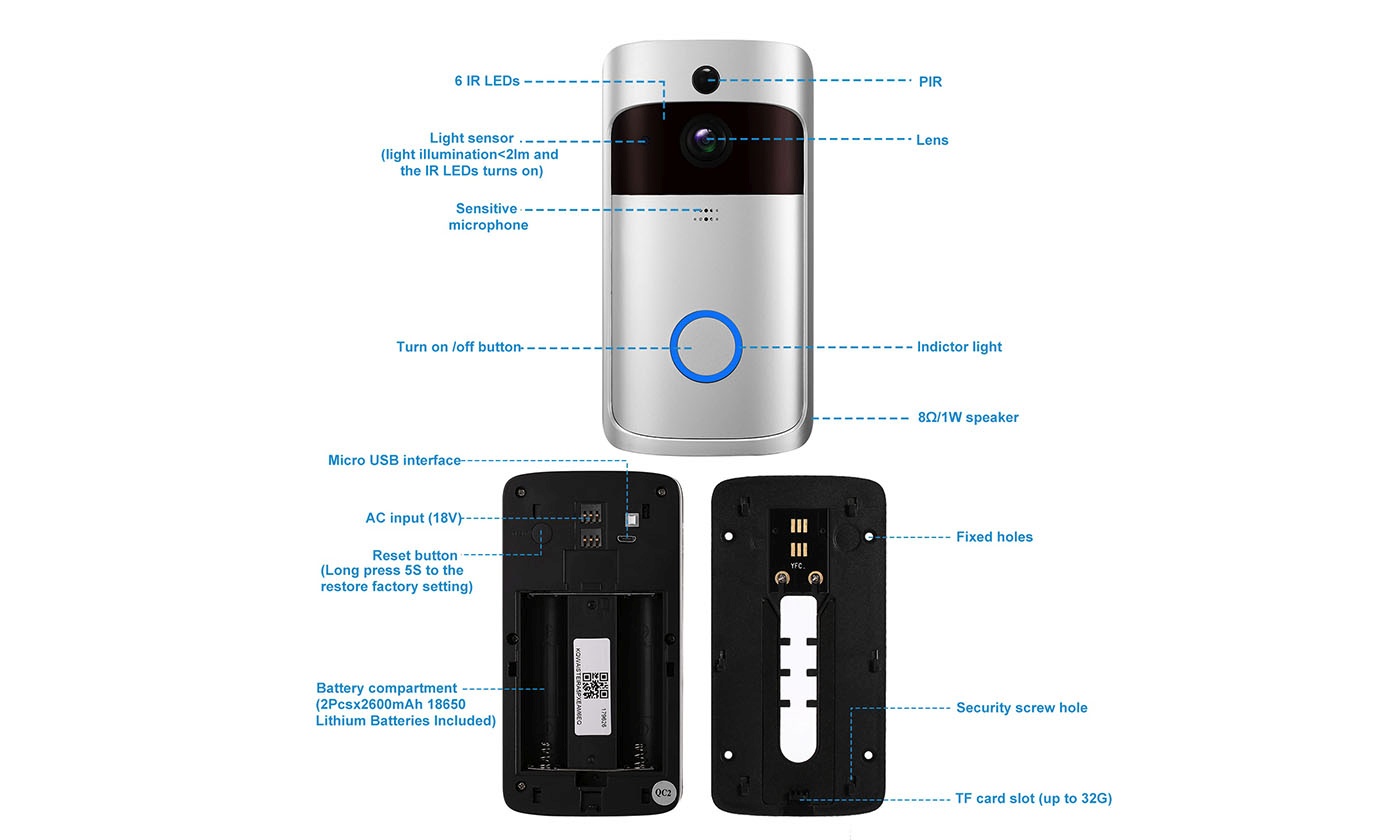 Video camera doorbell with two-way audio, Wi-Fi connectivity, and IR night vision allows you to access the video remotely, even at night