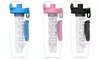 Keep track of your hydration routine with this BPA-free reusable water bottle featuring hourly time markings and removable infusion tube