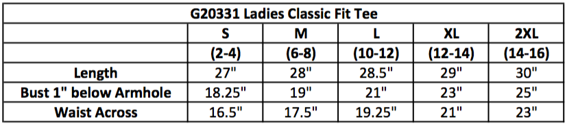 - Sizing chart