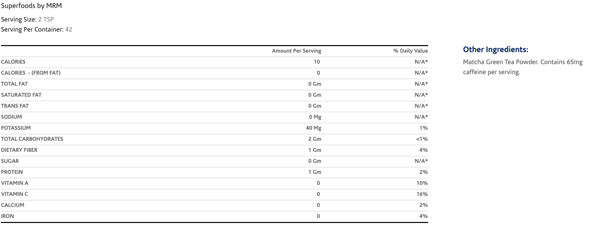 MRM Non-GMO Matcha Superfood Powder (42-Servings)