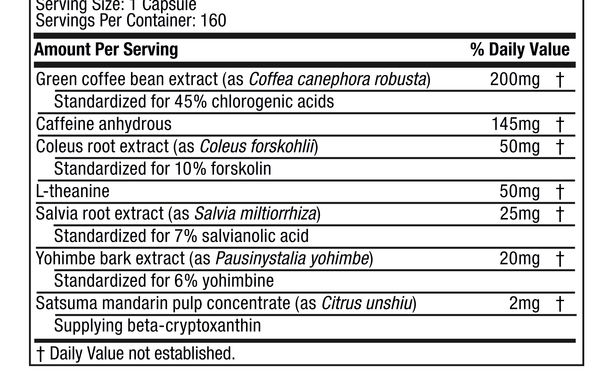 Garcinia cambogia: a small, pumpkin-shaped tropical fruit native to Southeast Asia, also known as Malabar tamarind. The fruit’s rind contains HCA, which may help burn fat and reduce the appetite.