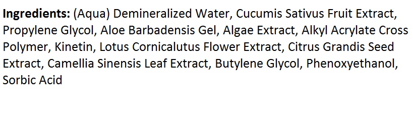 Demineralized water, Cucumis sativus fruit extract, propylene glycol; see full list of ingredients here
