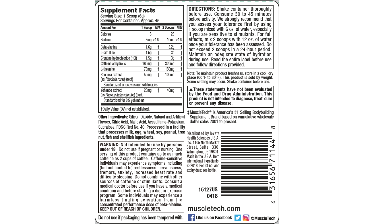 Muscletech Pro Series Neurocore Pre-Workout Dietary Supplement (2-Pack)