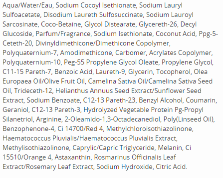 - Ingredients: shampoo and conditioner