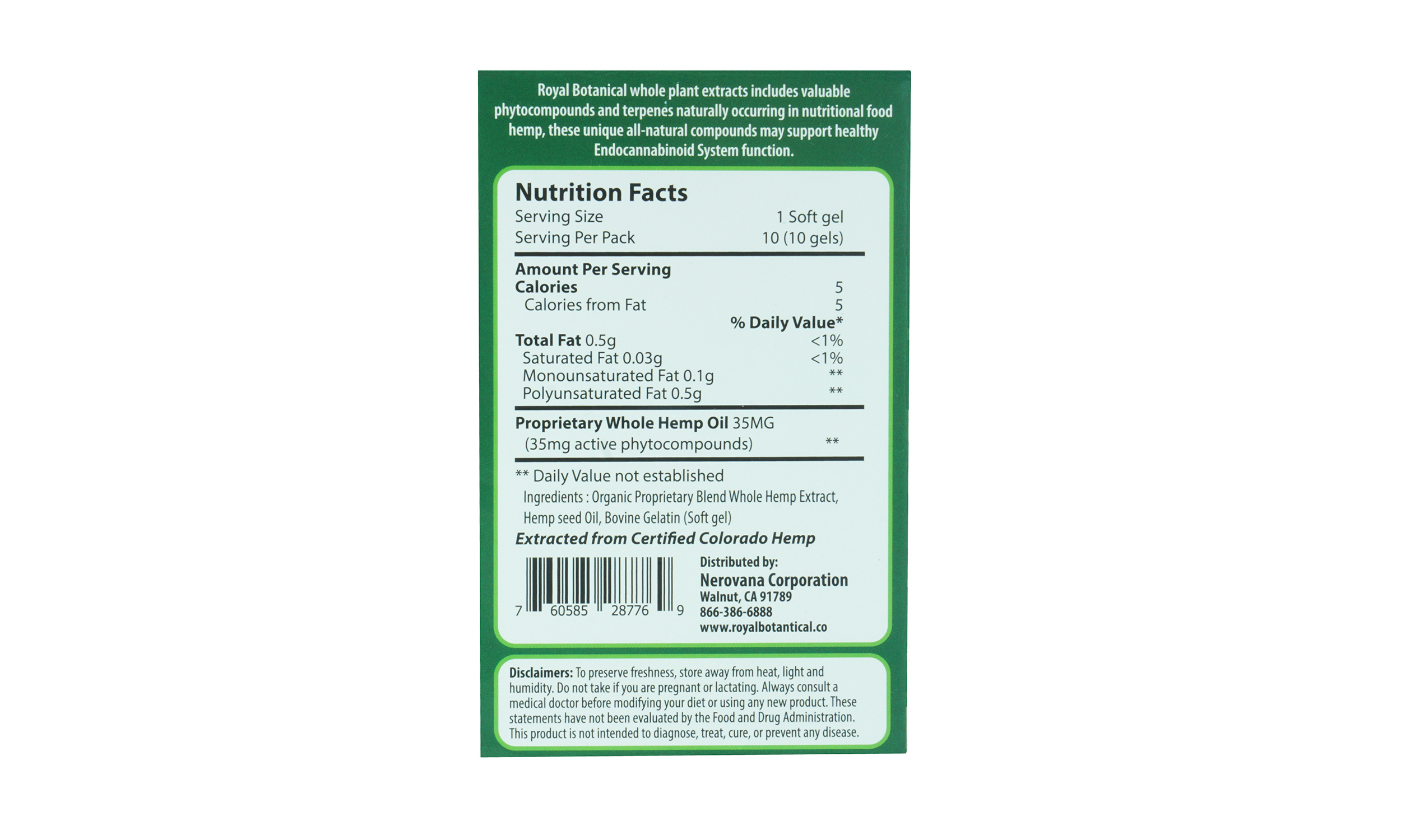 - Each capsule contains 35mg of whole hemp food oil