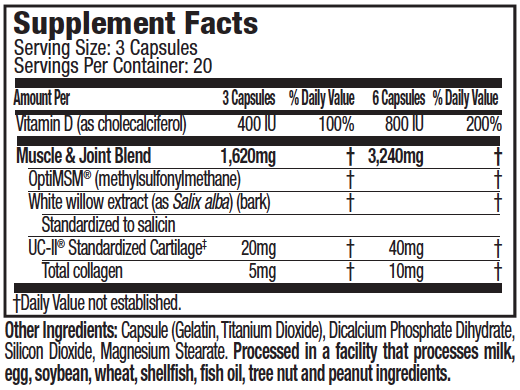 - Features UC-II, a type of collagen derived from chicken breast cartilage