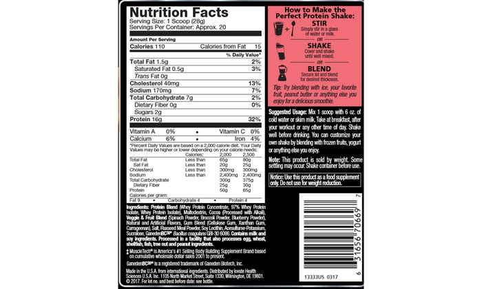 - Serving size: one scoop (28 g.)