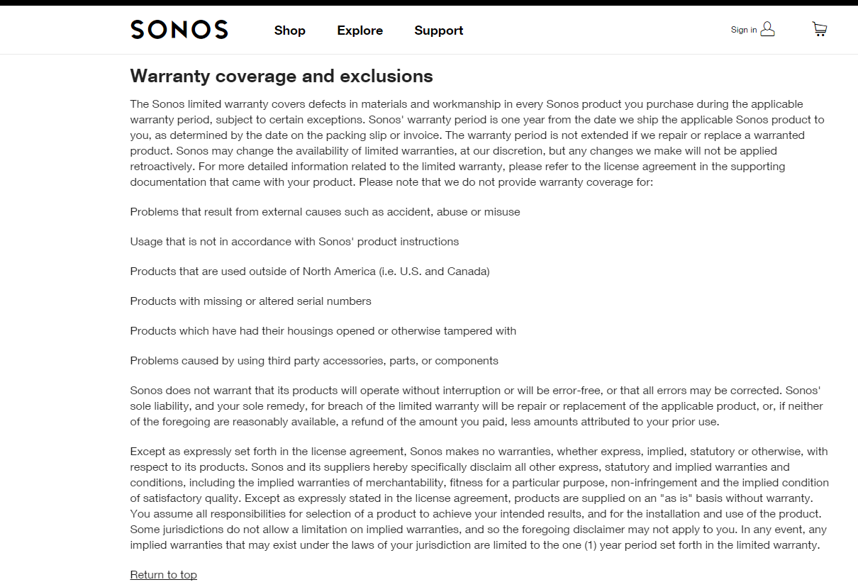 - Warranty: 365 days parts-and-labor warranty provided by Sonos Limited Warranty.