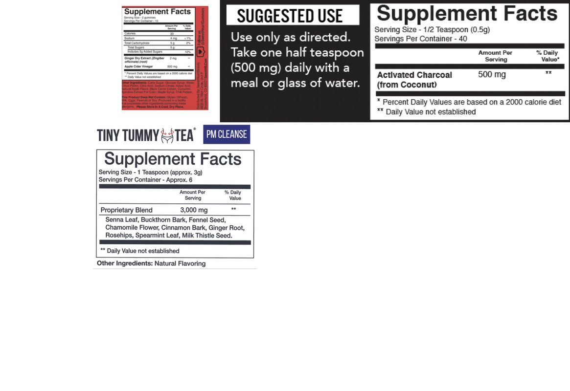 Tiny Tummy PM Cleanse Tea, Apple Cider Vinegar, Detox Charcoal, and Shaker