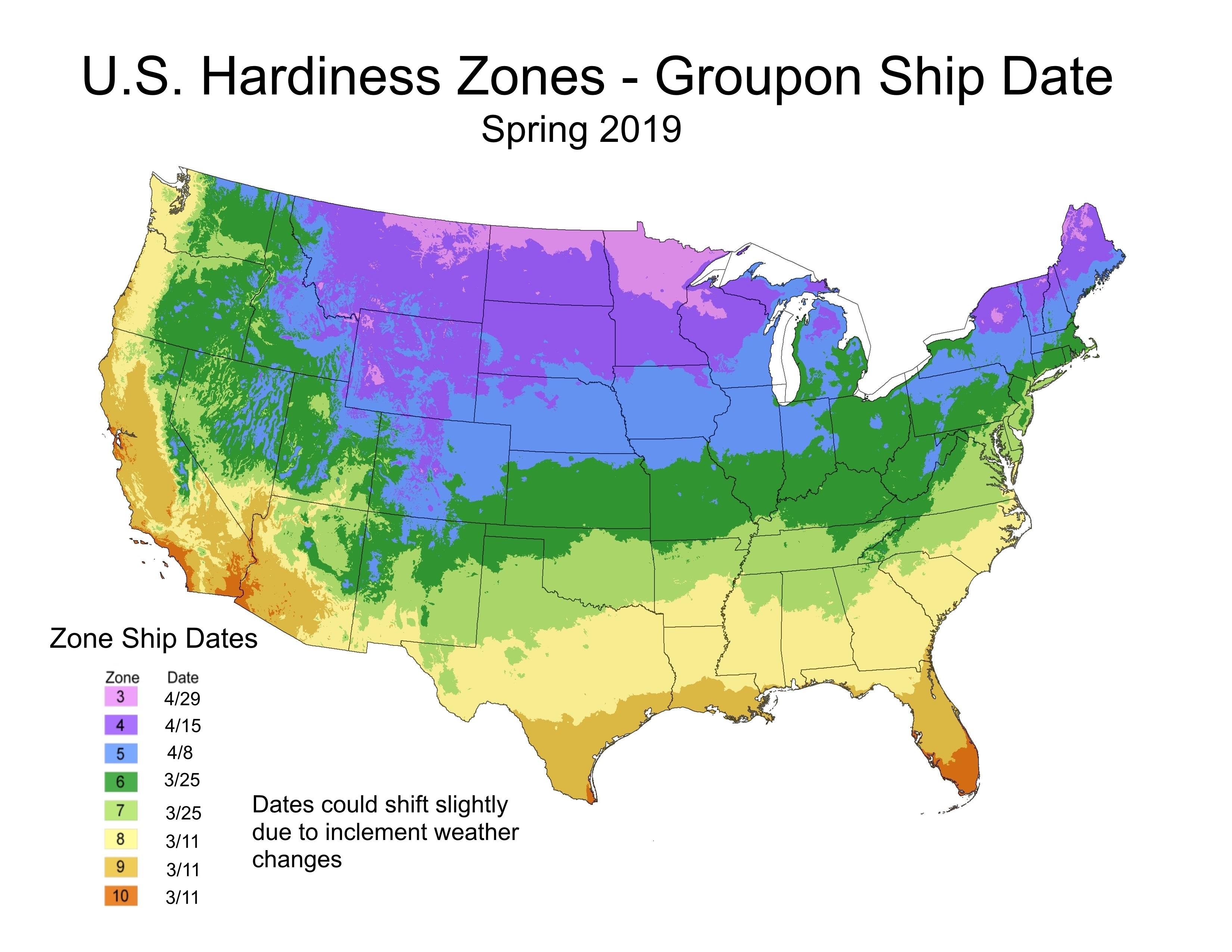 - First zone shipping will begin 3/11/19 and is subject to climate zone and optimal planting conditions.