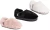 Decorated with tape trim and fir details, these slippers made with faux fur can be a great solution for colder months