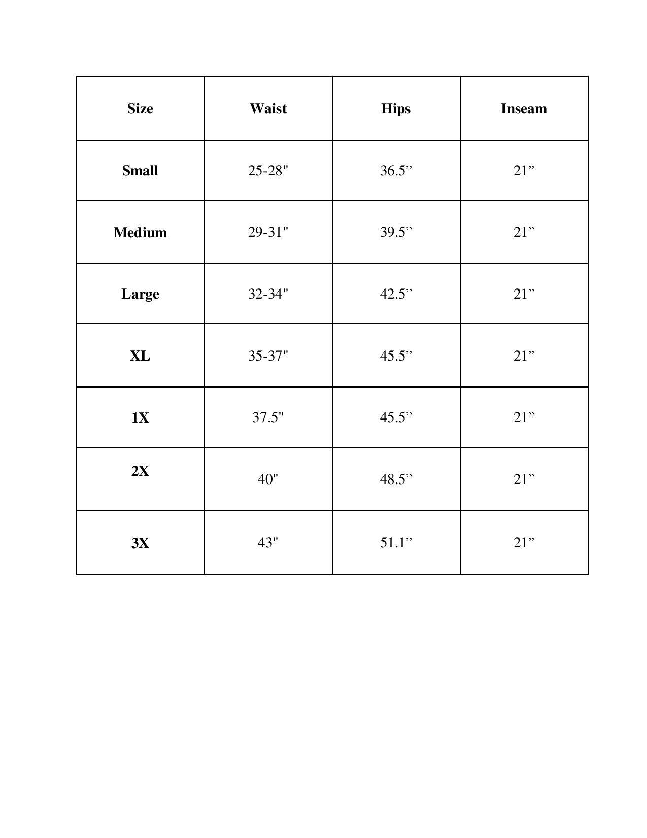 - Sizing information;