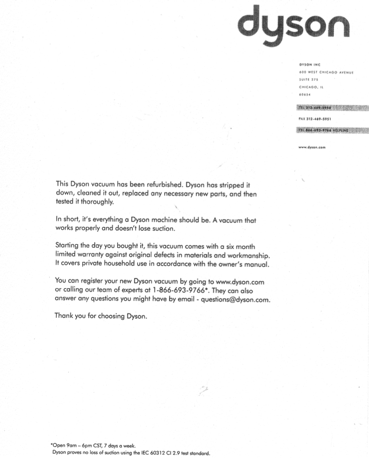 - 6-month warranty from Dyson
