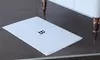 - Soft, white terry bath mat with Greek key decorative border