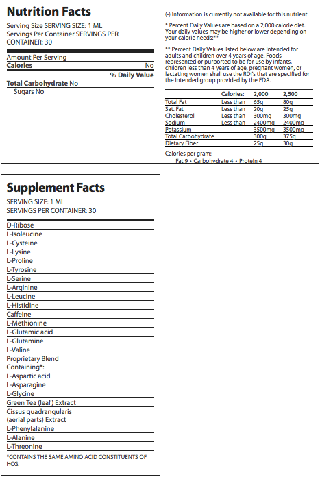 Drops formulated to reproduce the potential weight loss benefits of hormone HCG and possibly suppress appetitie