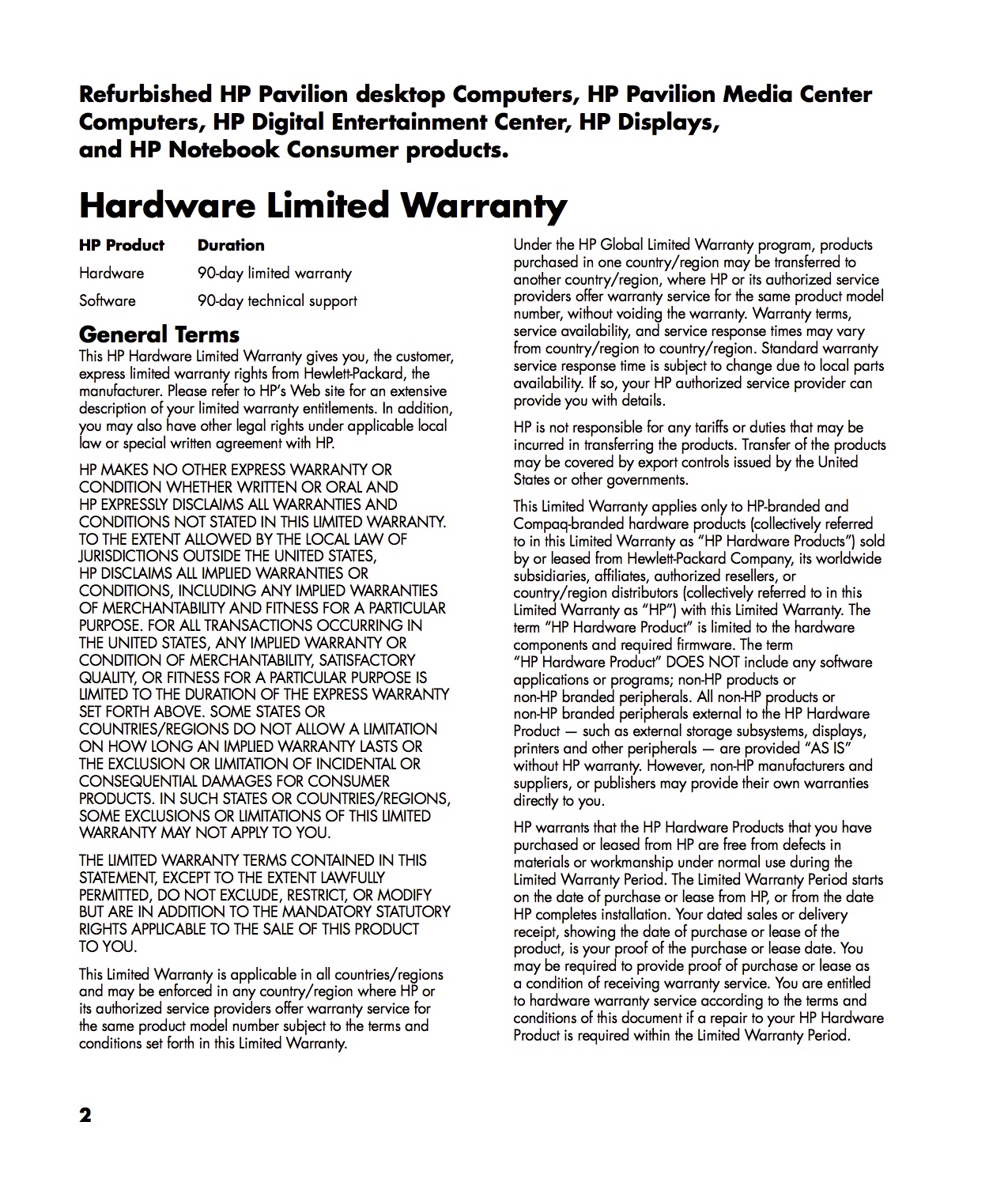- 90-day warranty from HP