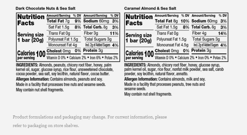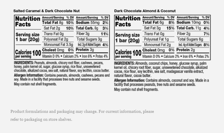 - 40 Count: Dark Chocolate Nuts & Sea Salt/Caramel Almond & Sea Salt