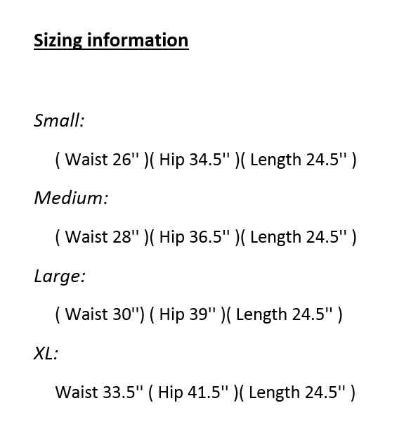 - Sizing information