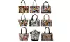 Bold, colorful bags in a variety of styles are accented by magazine cover prints